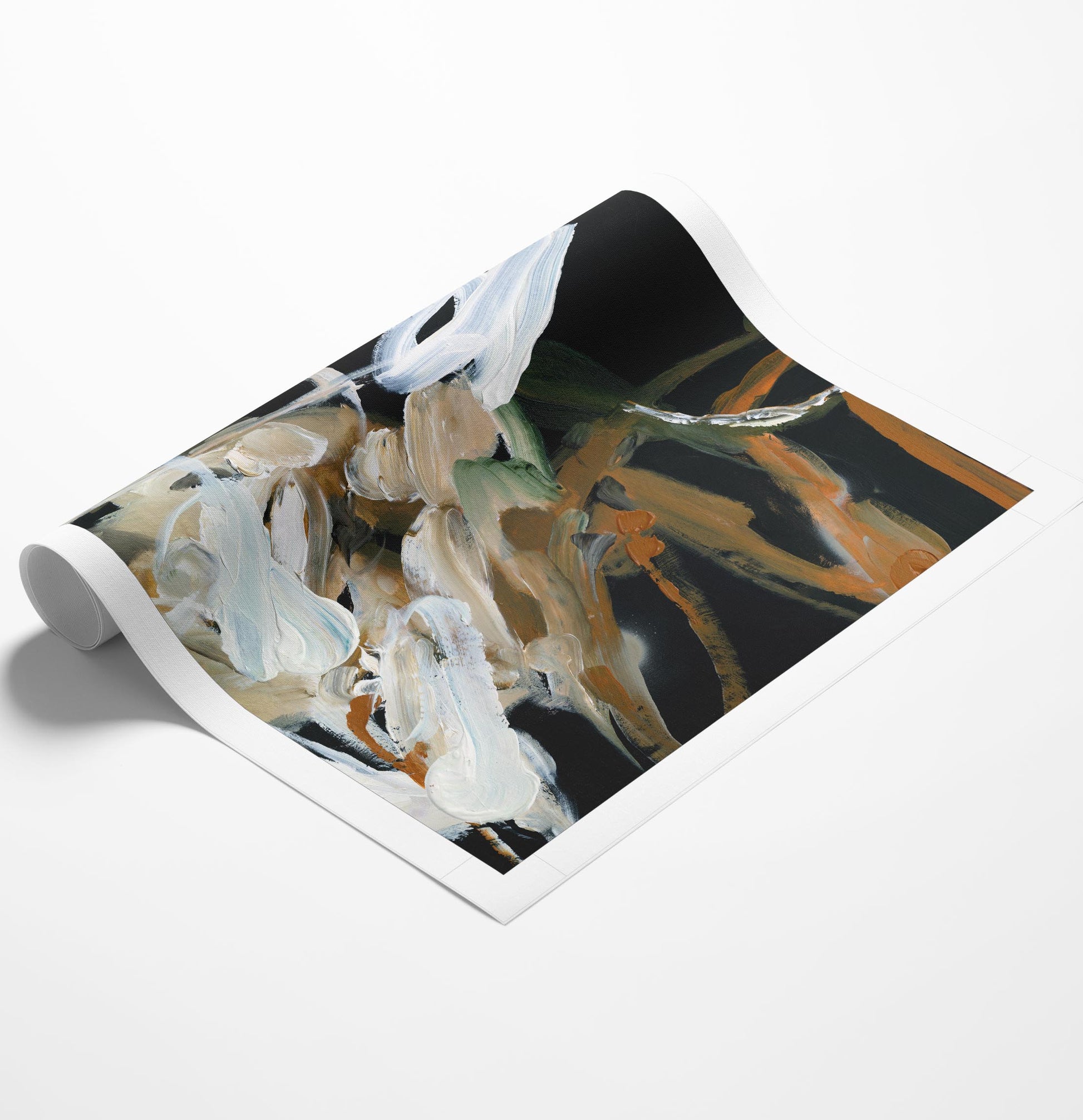 Abstract artwork in shades of white and black. Giving the look and commanding feel of an original artwork, these prints are cost-effective with the same high quality.