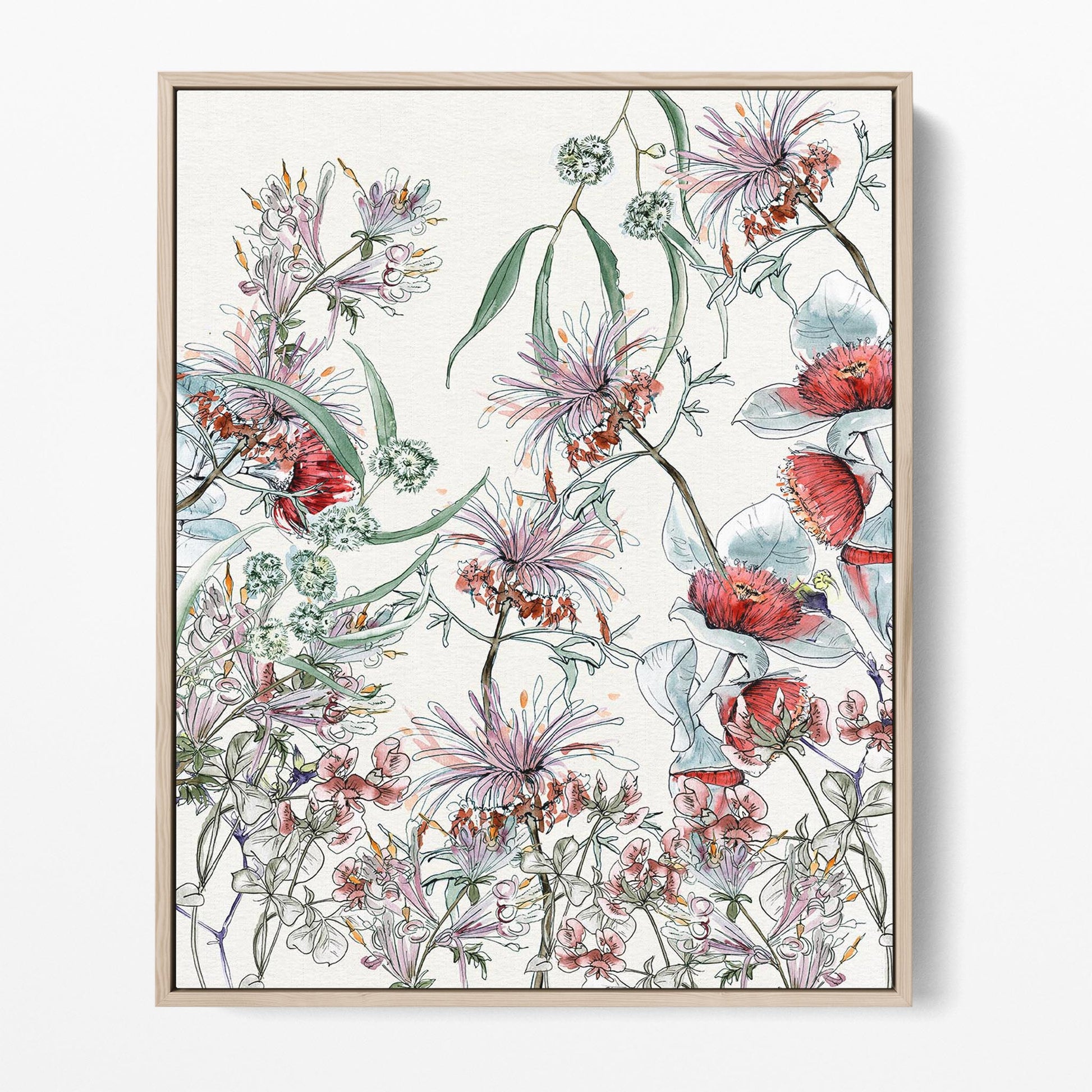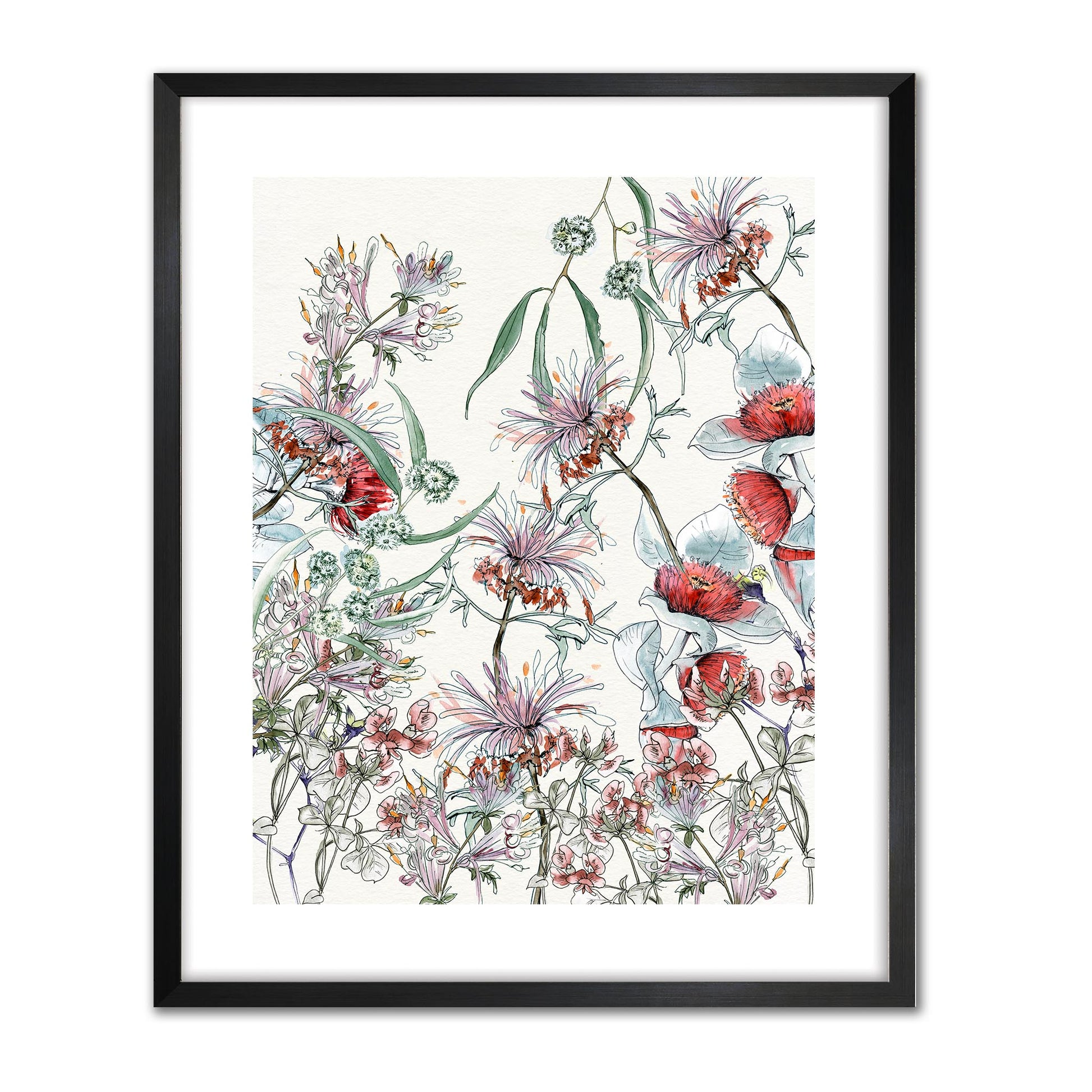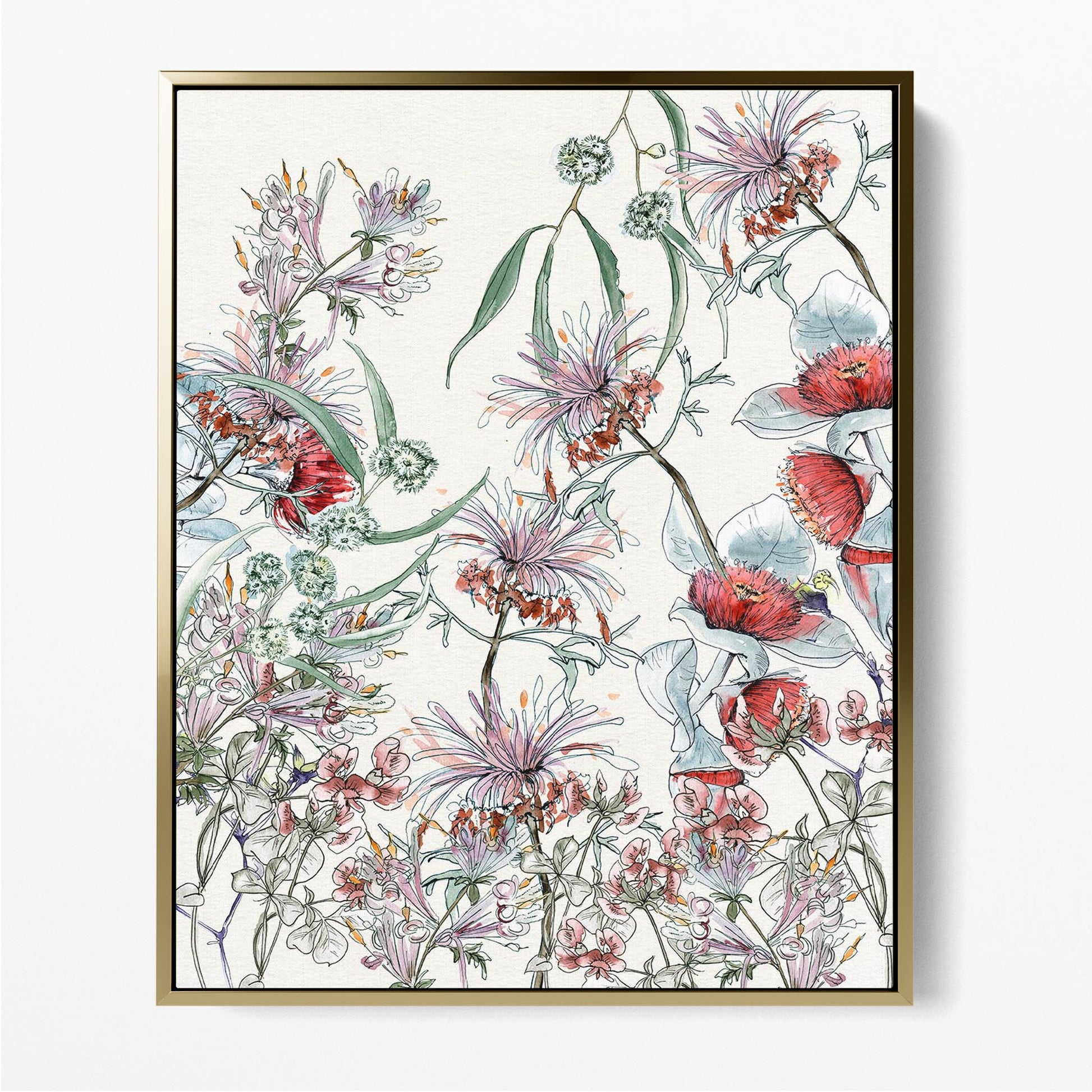 This pretty print features Australian native flowers in a watercolour and ink style in muted tones.
