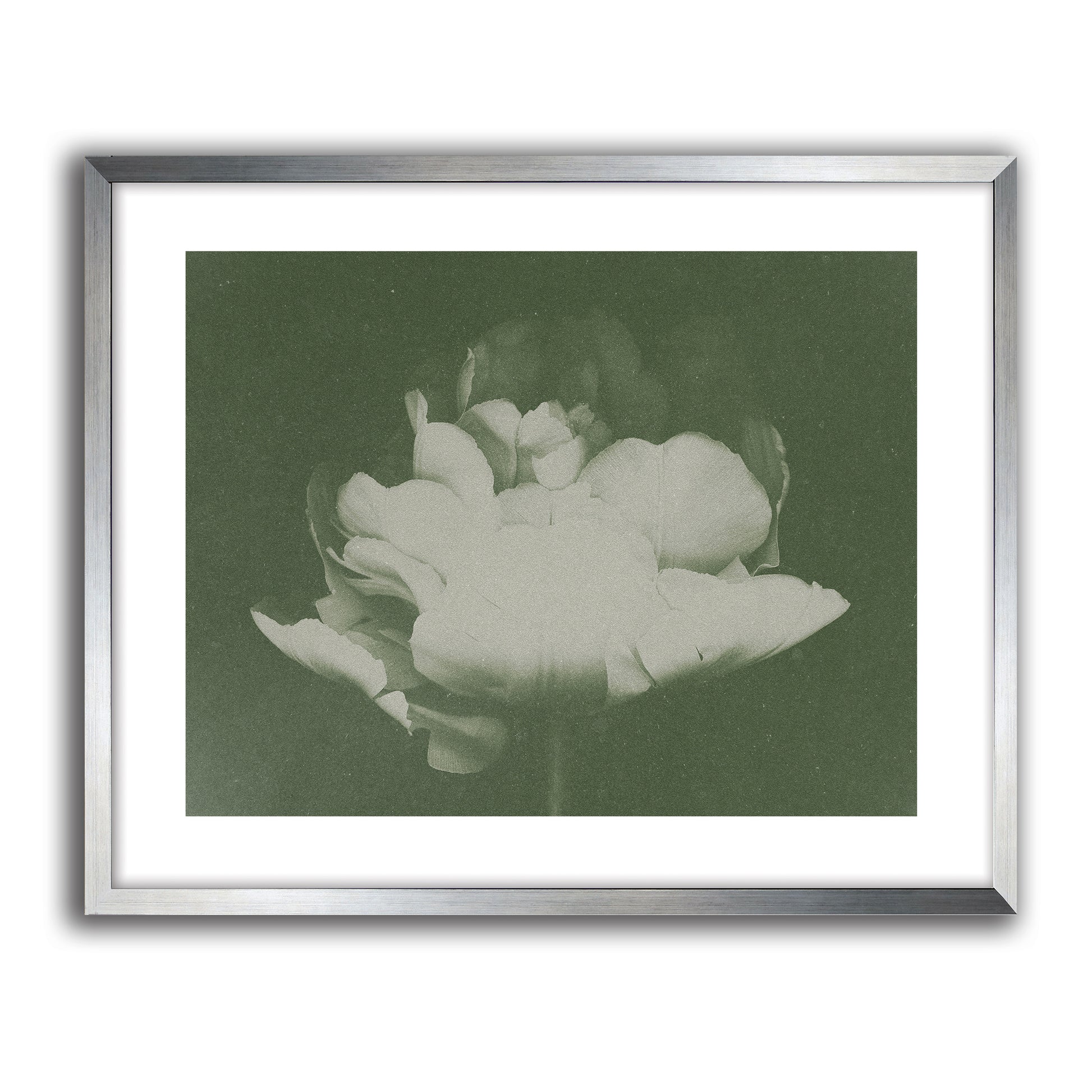 Beautiful profile close up floral. This arrangement is featured against a textural vintage green background.