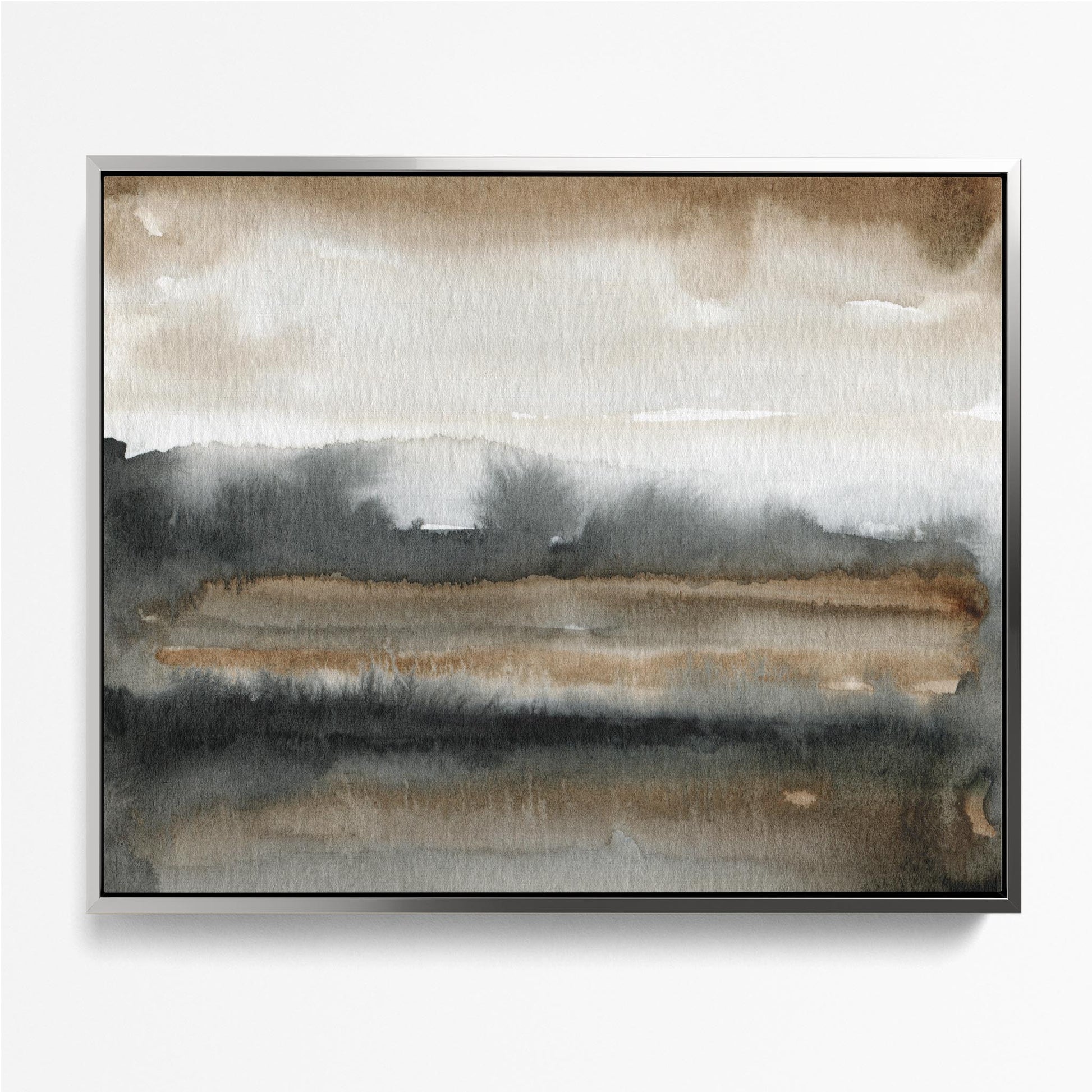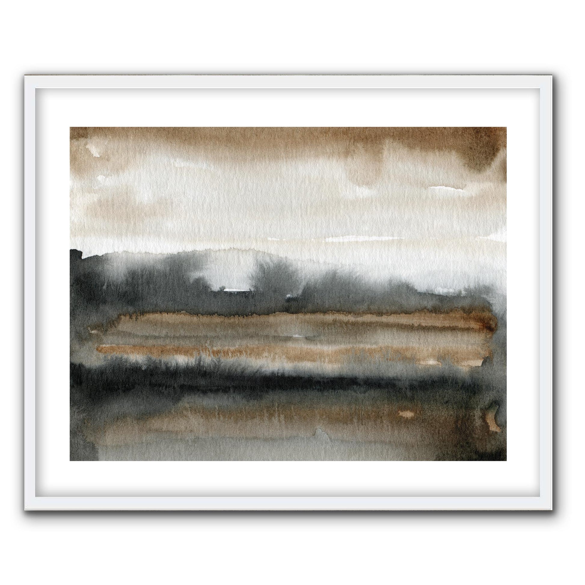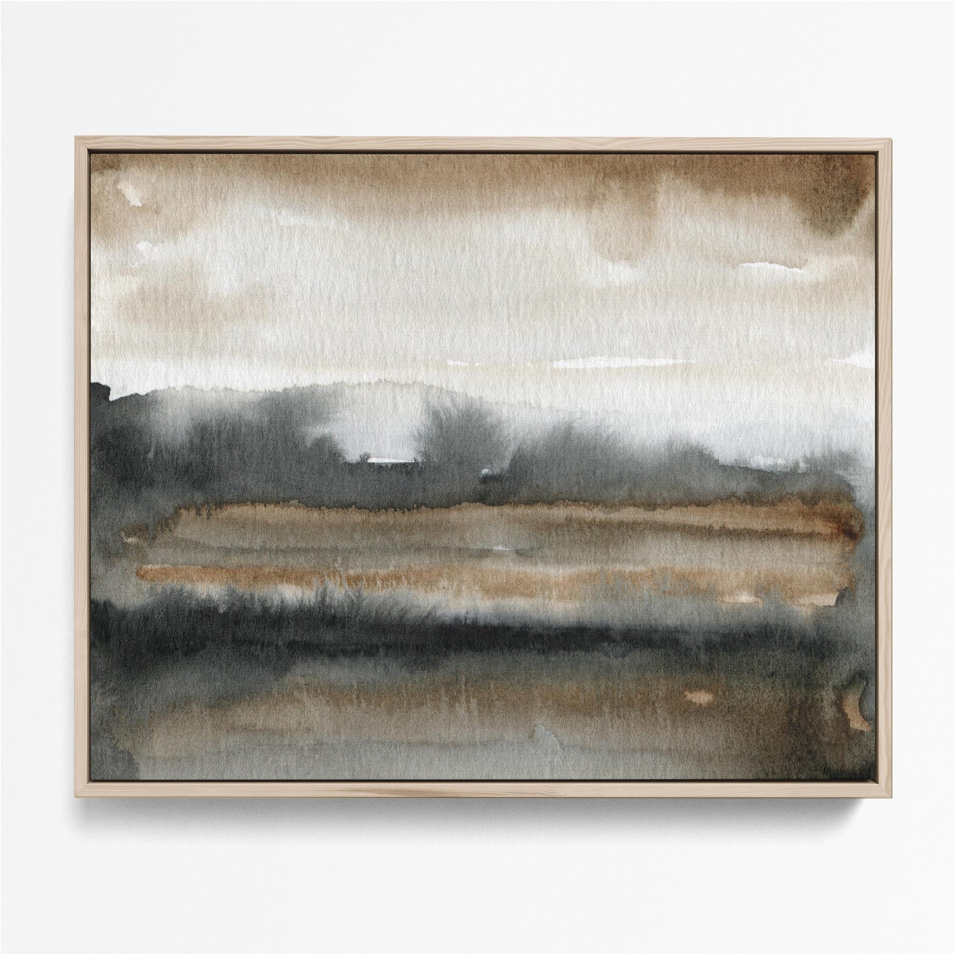 Delicate neutral colours in a water-colour style create an atmospheric landscape.