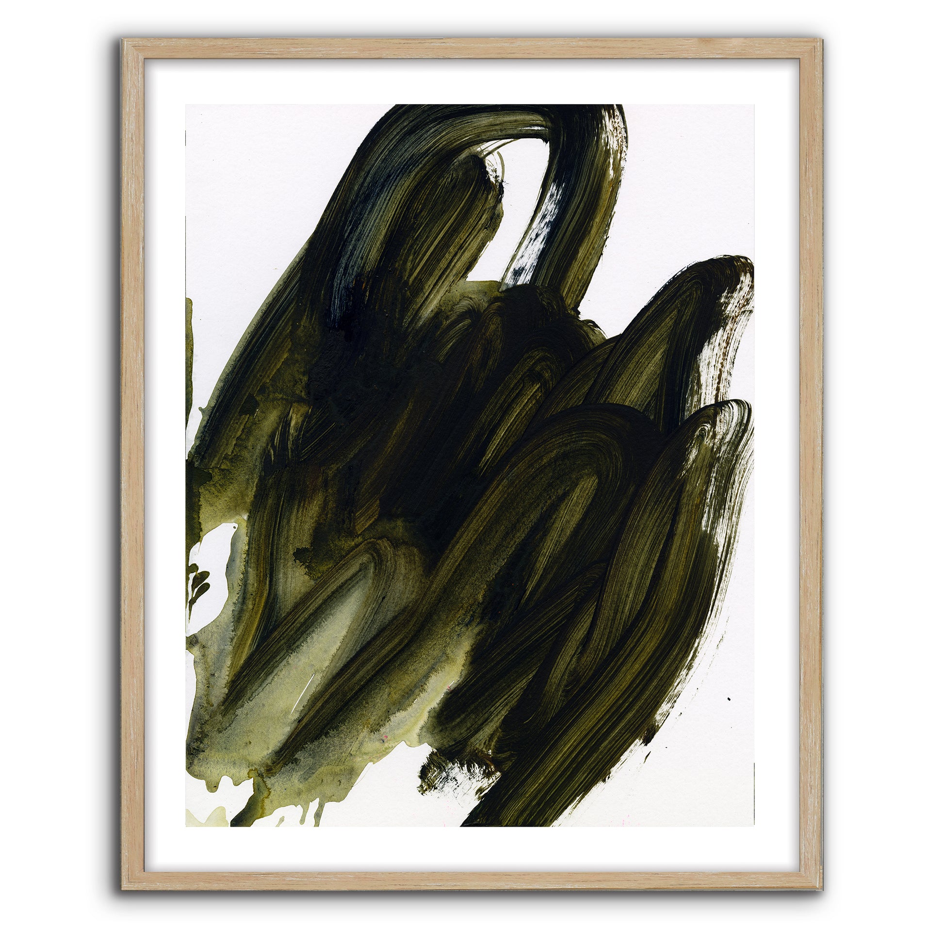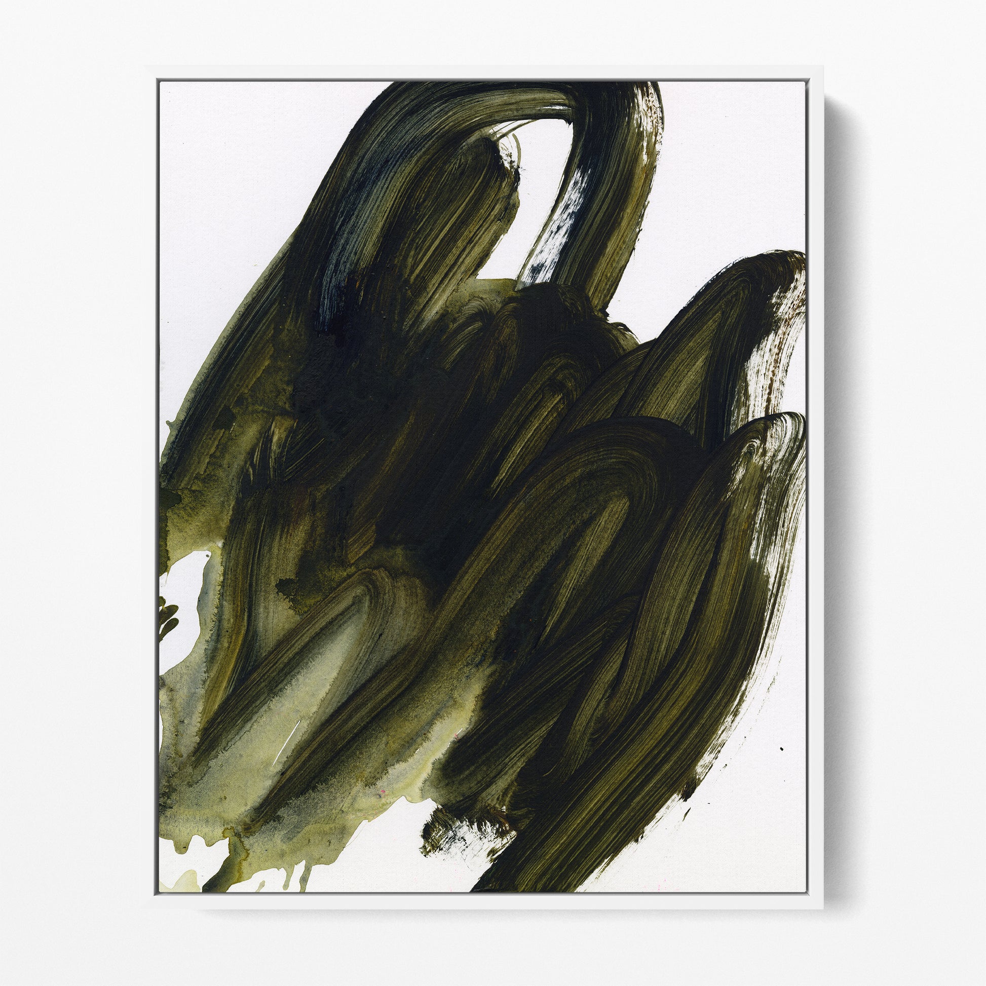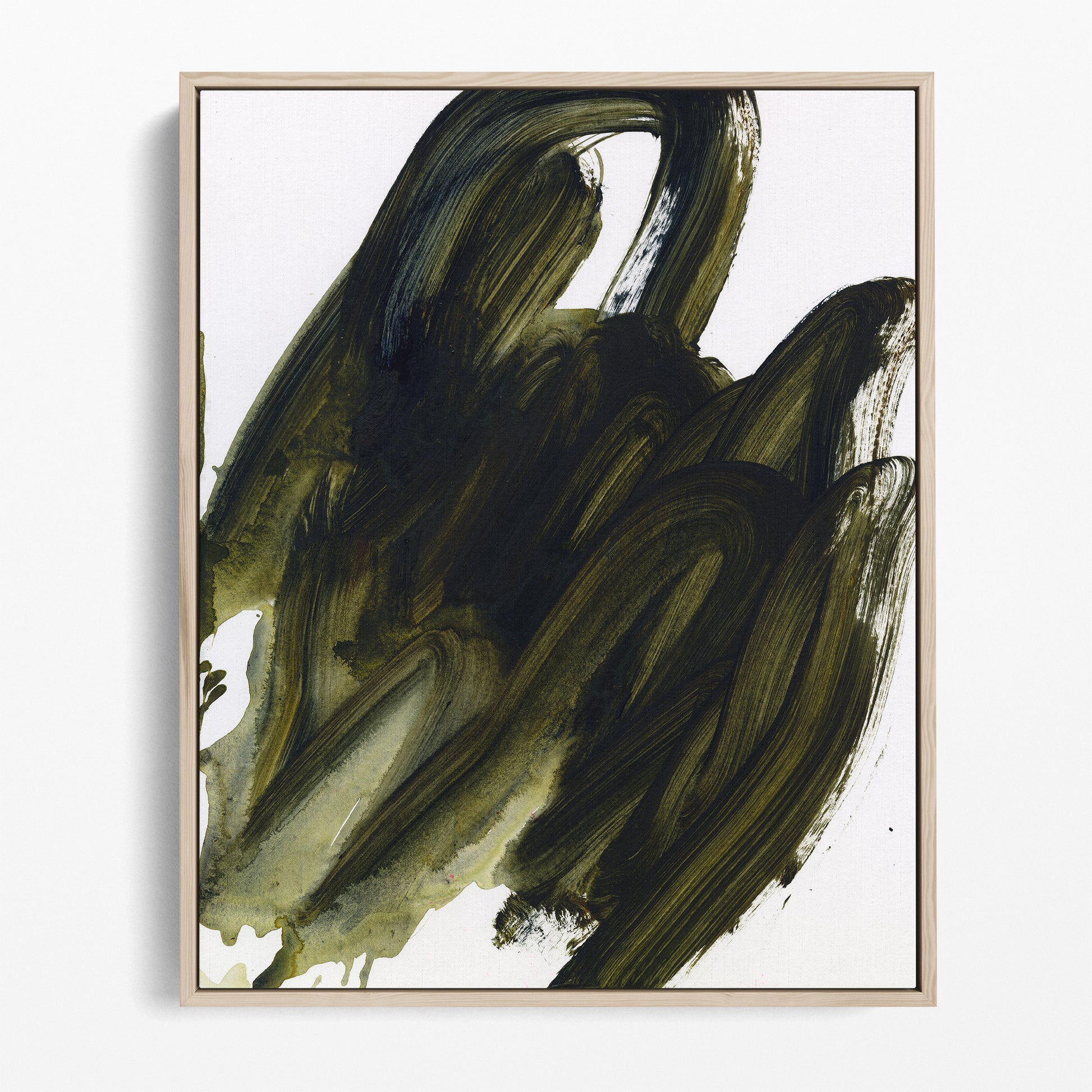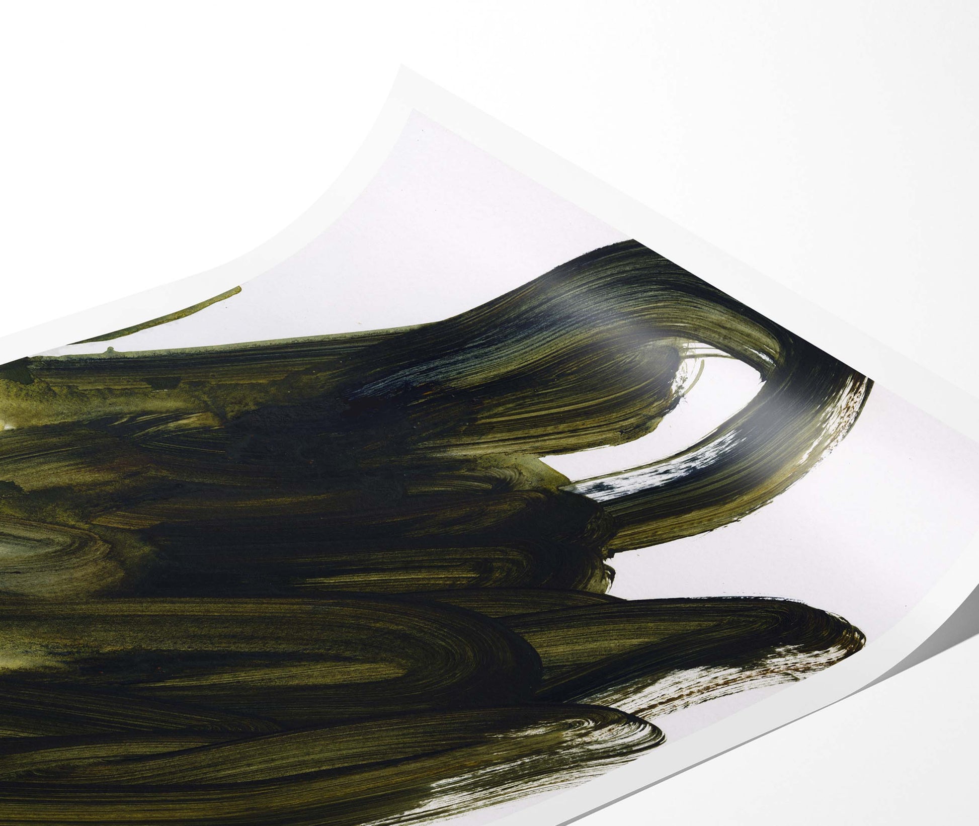 Olive green brushstrokes. Large sweeping brush strokes forming a beautiful abstract collection of olive green hues. This Artprint is displayed against a white background to give vibrancy and life to each individual brushstroke.