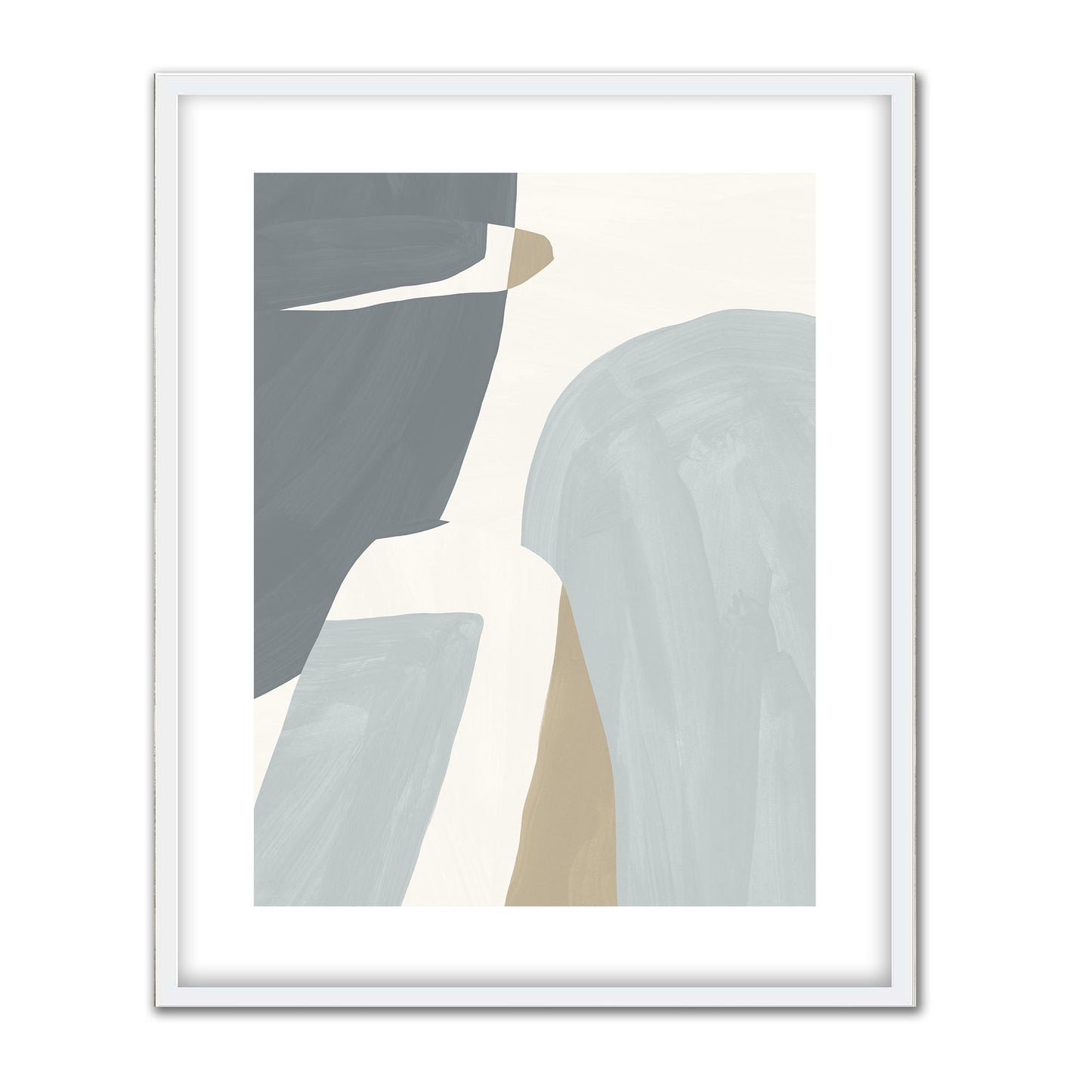 Contemporary neutral shapes and silhouettes on a white background combine to create a light fresh print.