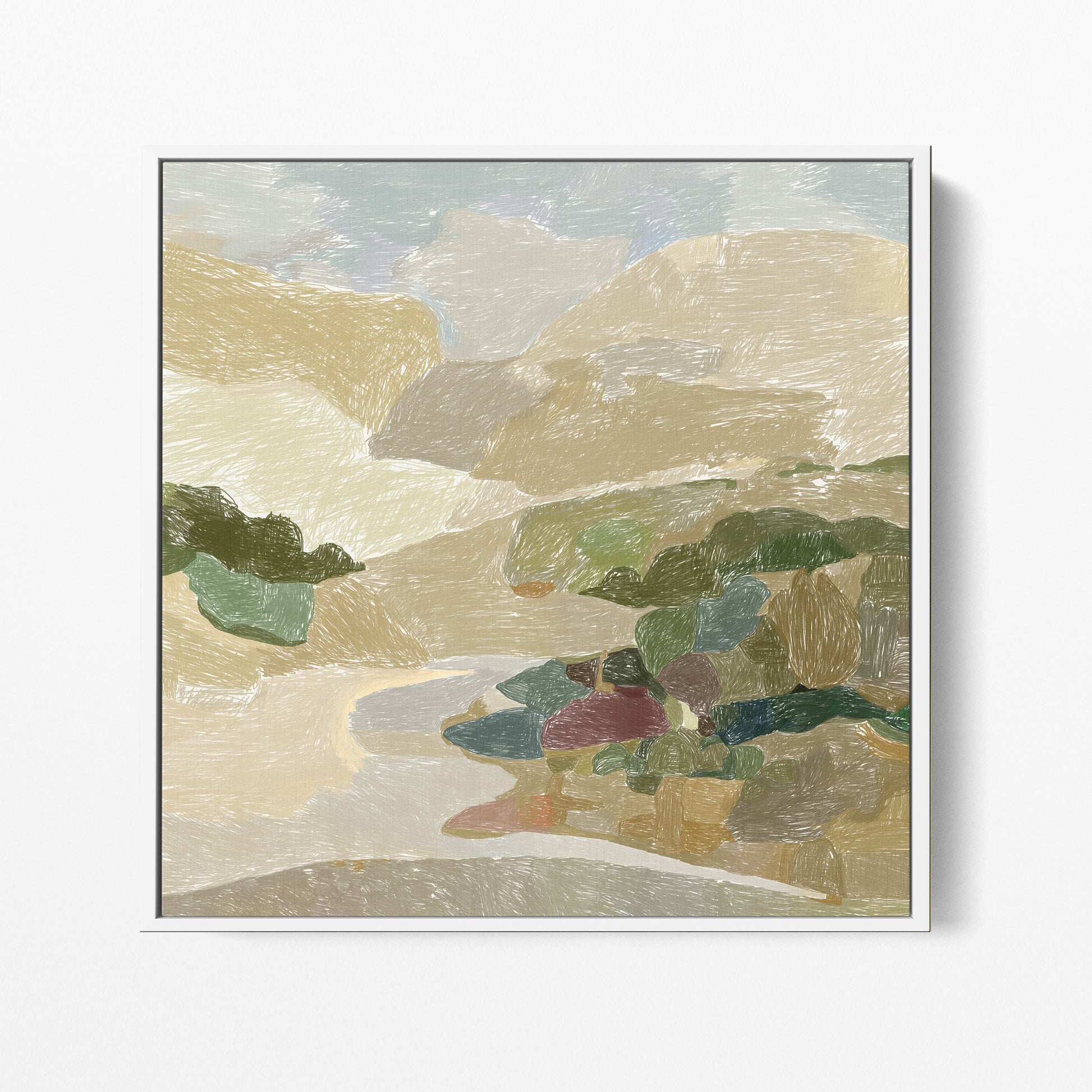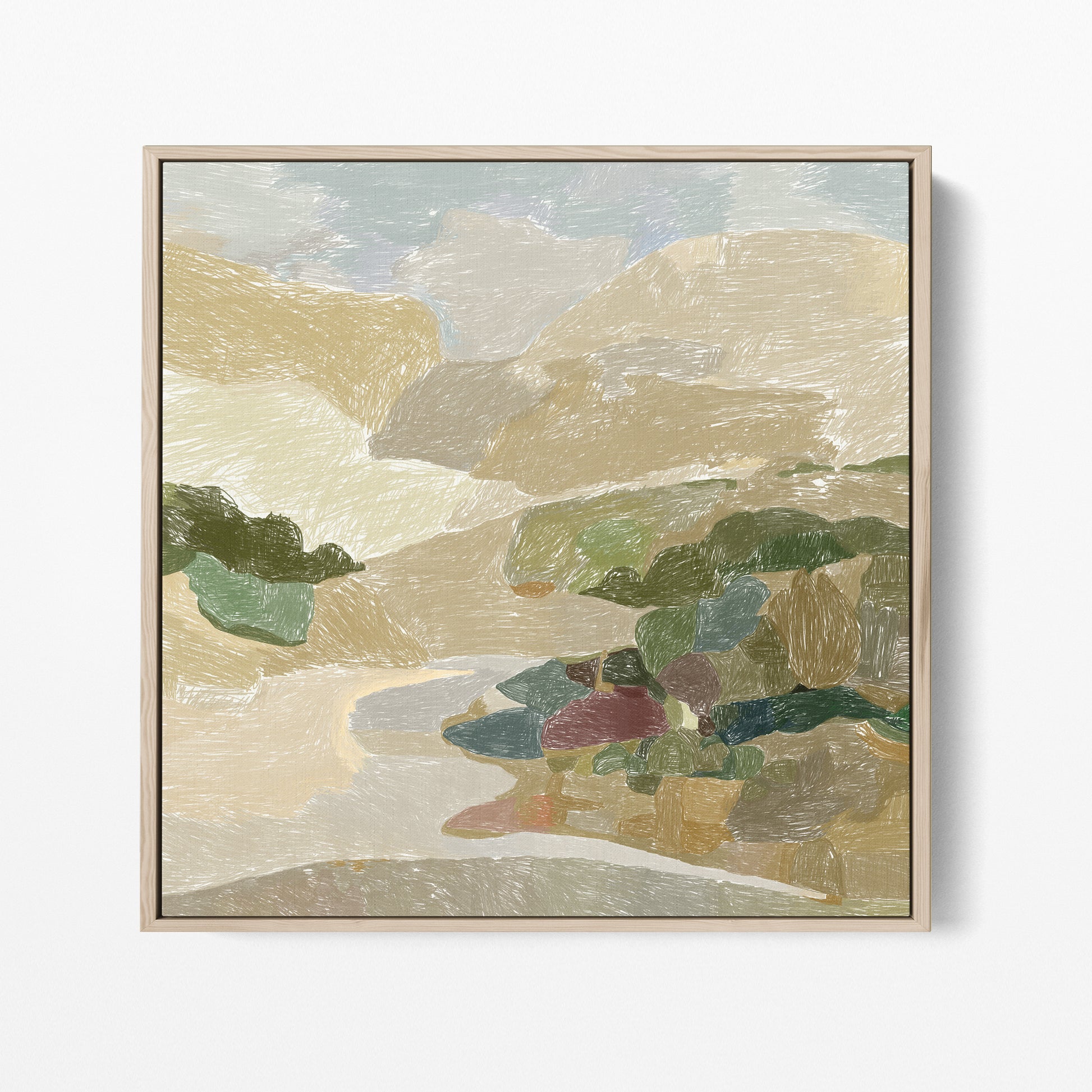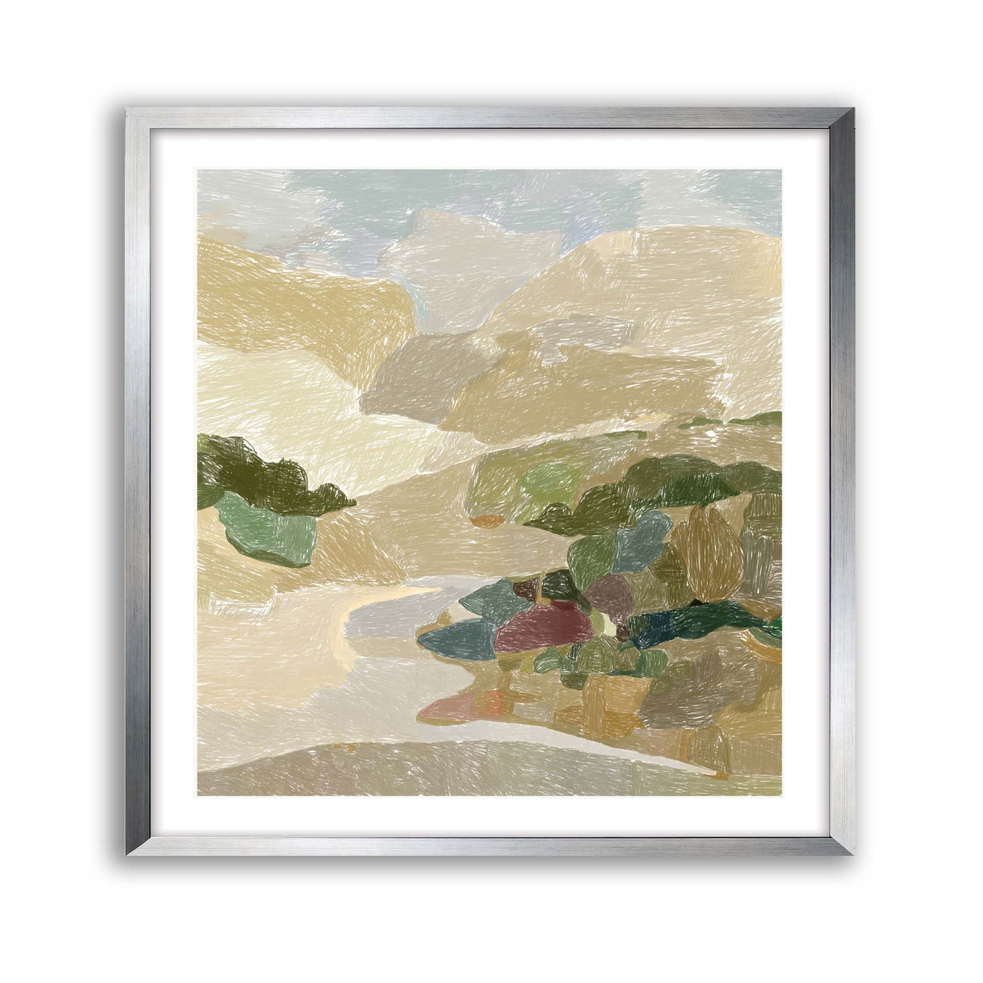 Hand drawn sketches which form a subtle abstract landscape. Displayed with soft hues of neutral and autumn tones.