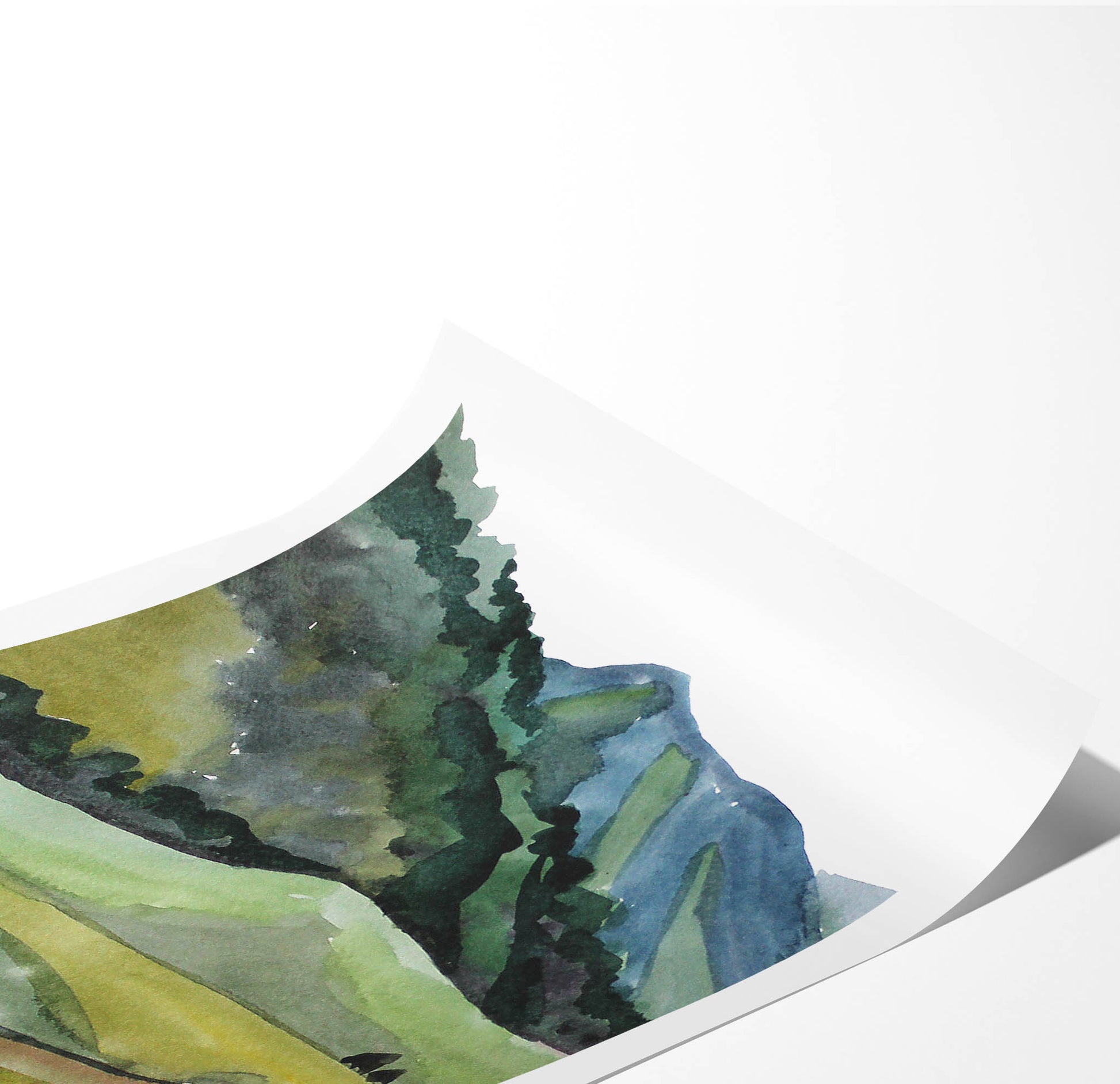 A beautiful abstract landscape is created in a soft watercolour style. This creates a space of intuitive calm, warmth and happiness.