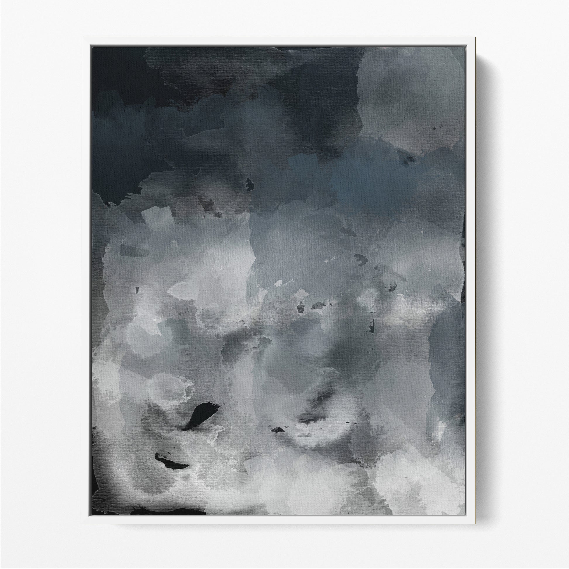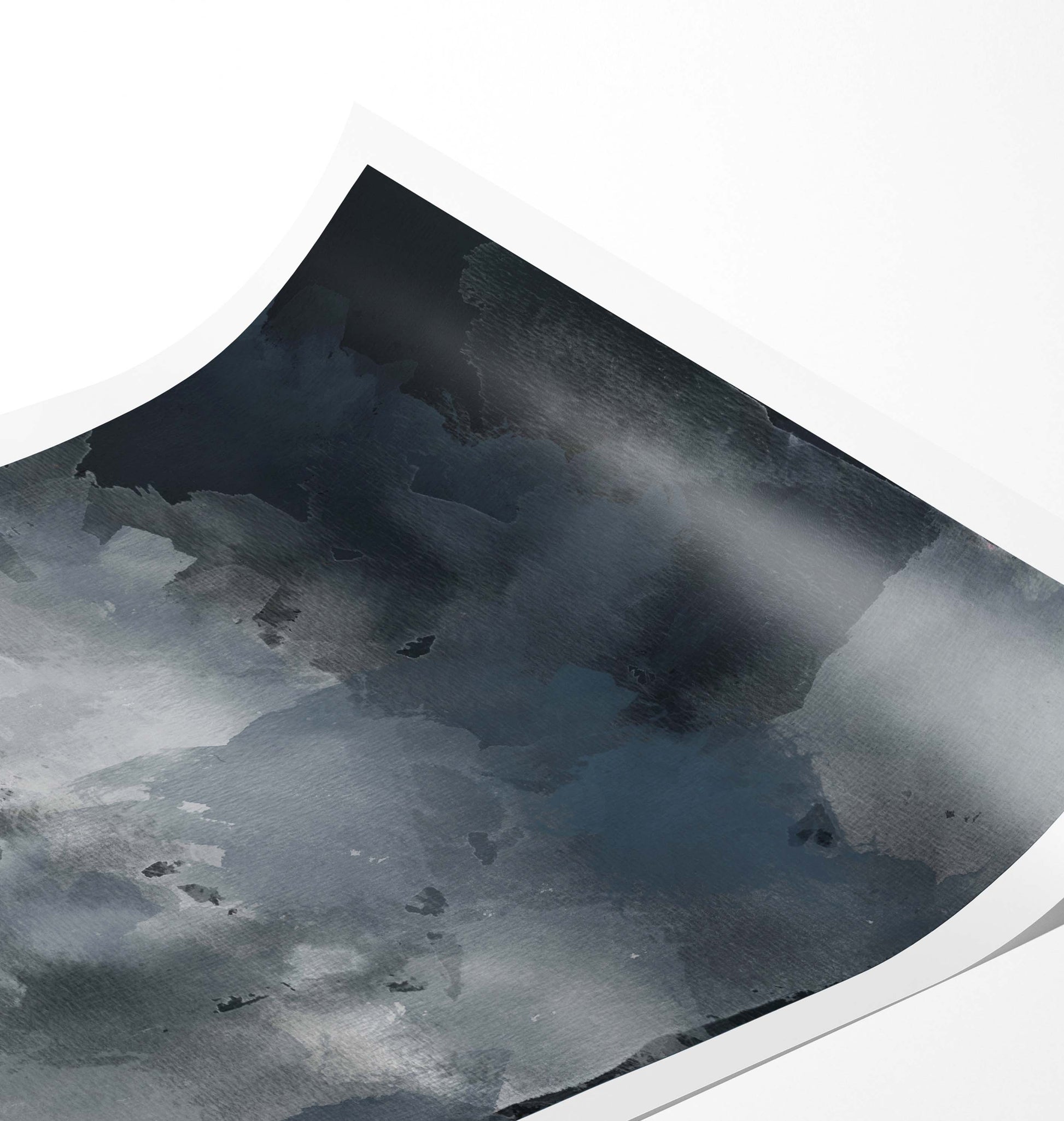 Black and grey watercolour style artwork that creates a moody atmosphere, an image that would suit many modern interiors.