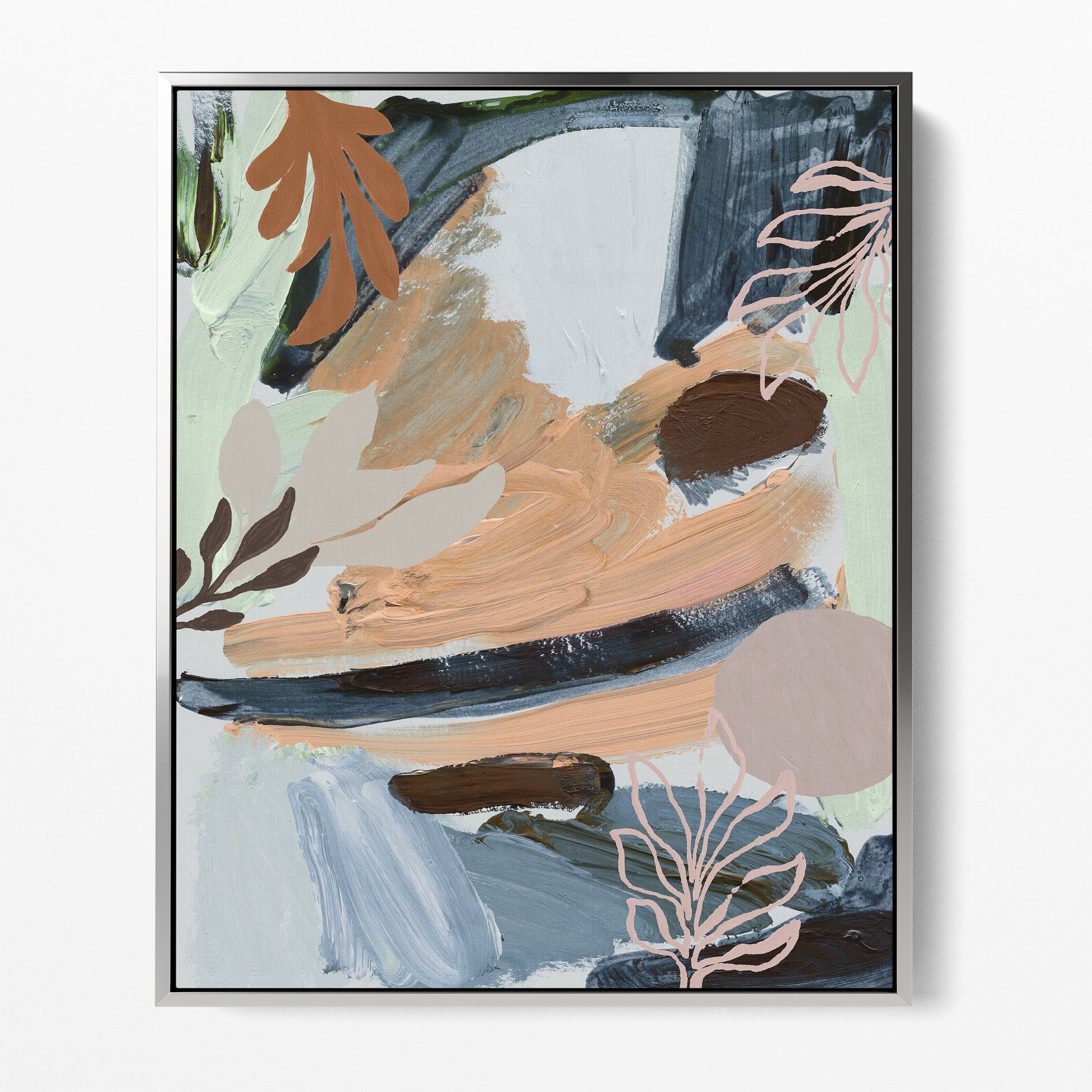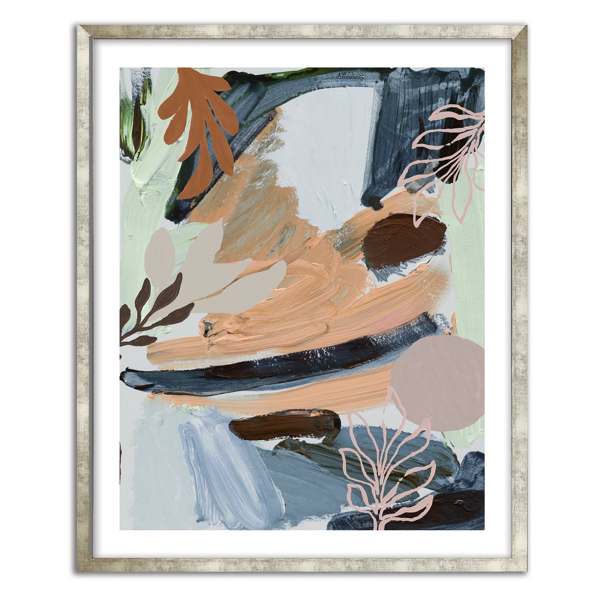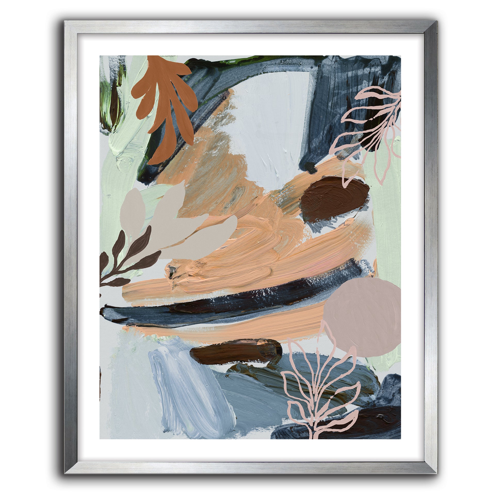Cool mints, Autumn hues and ash blues among a botanic abstract art-print