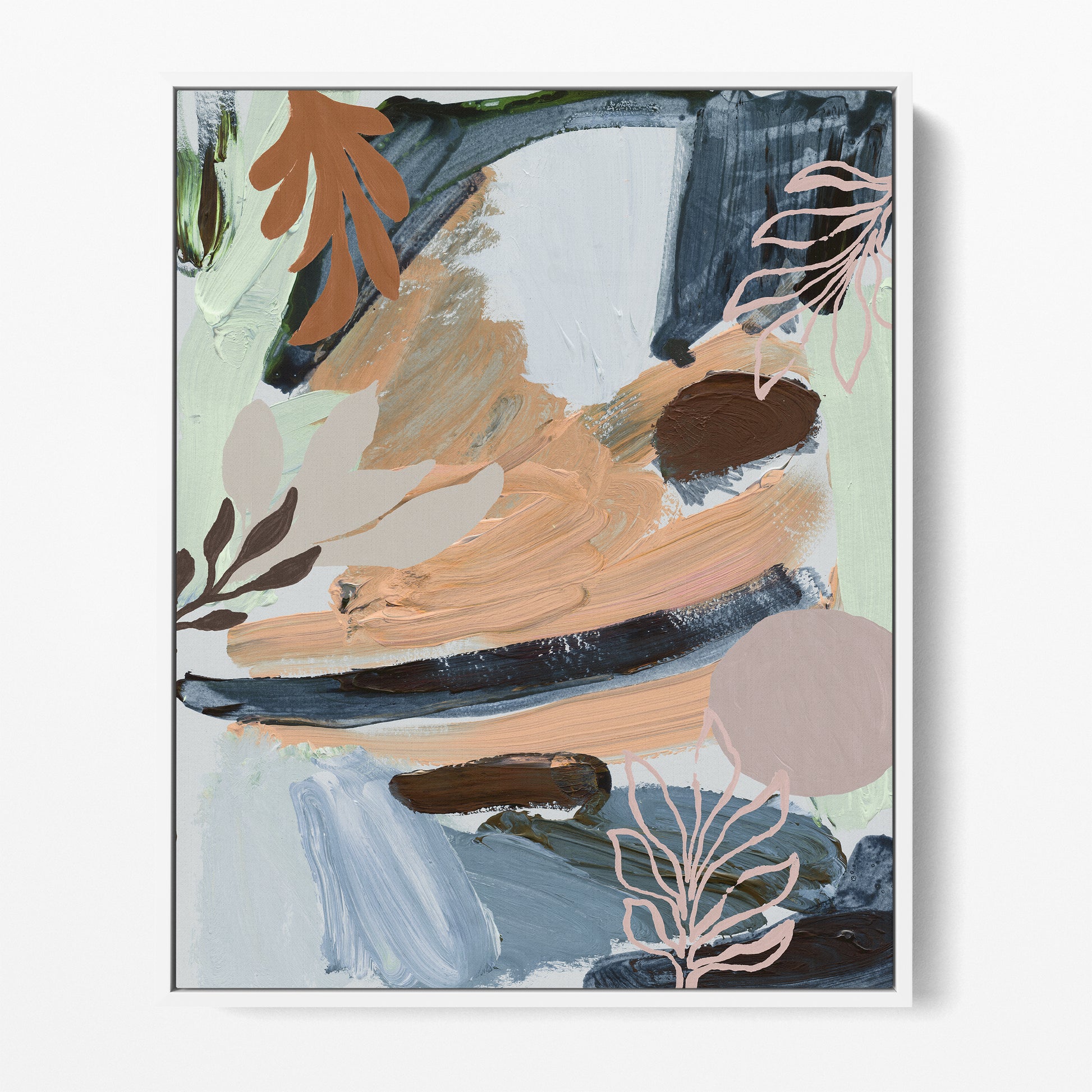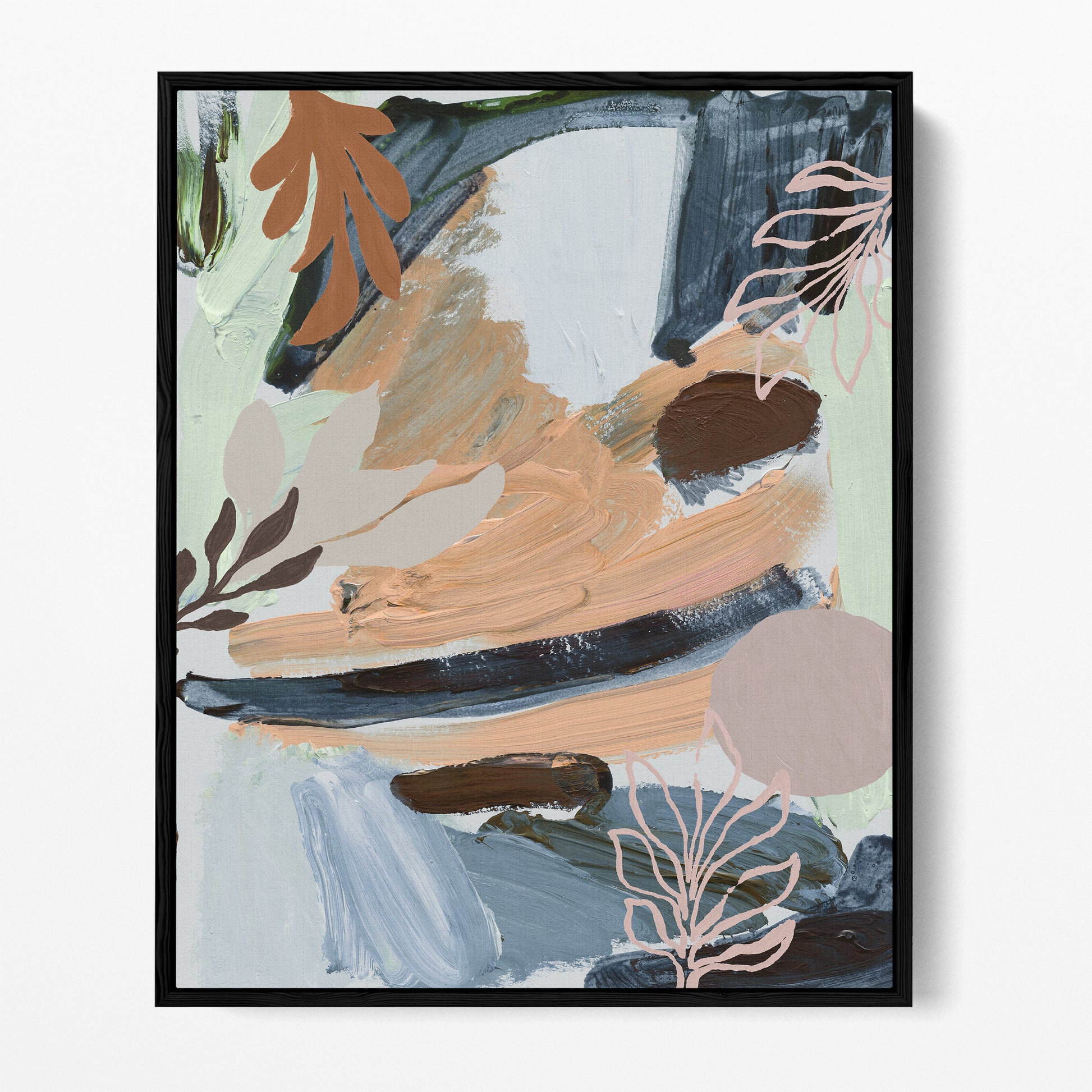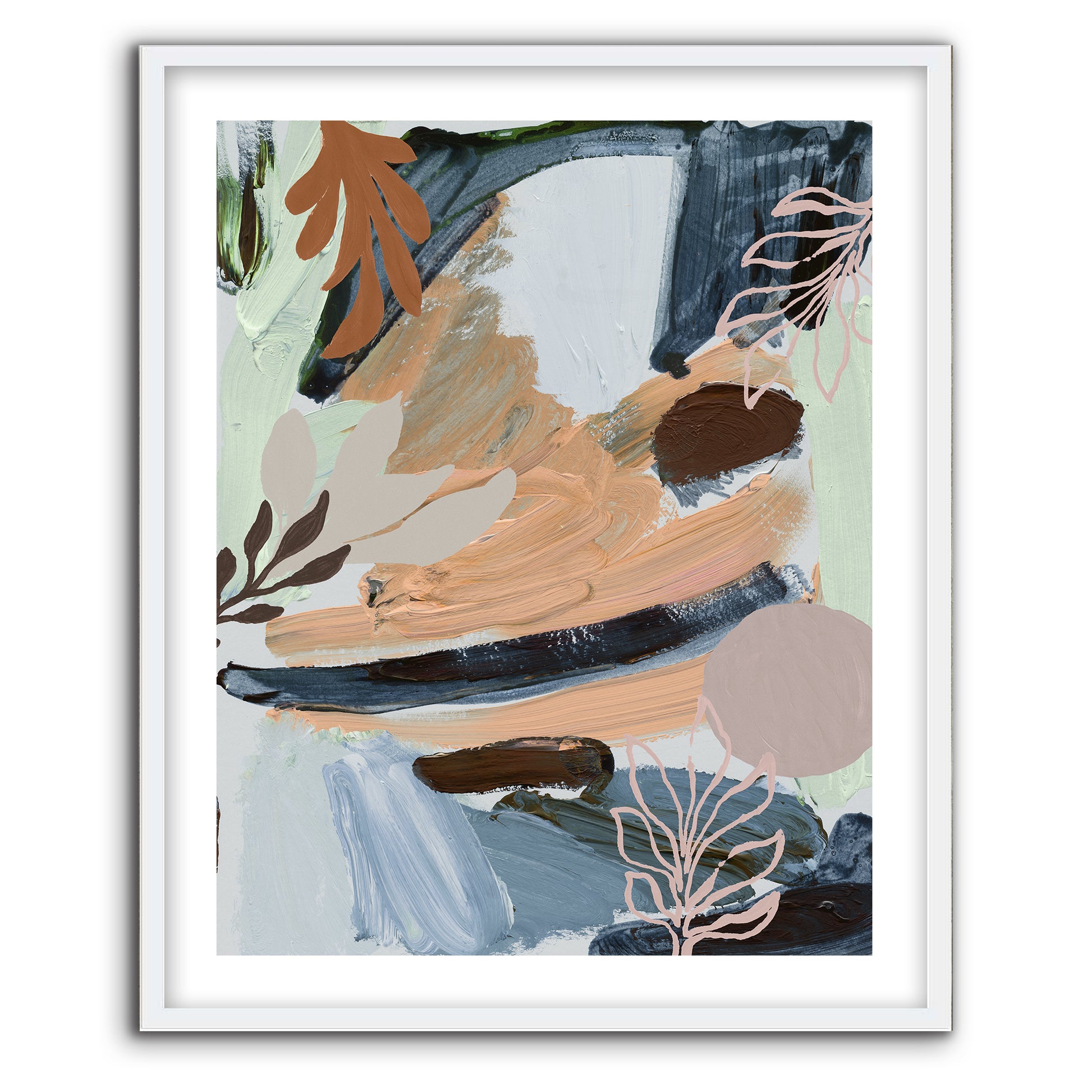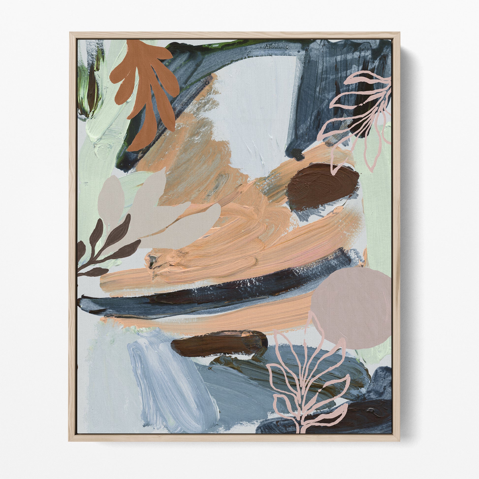 Cool mints, Autumn hues and ash blues among a botanic abstract art-print