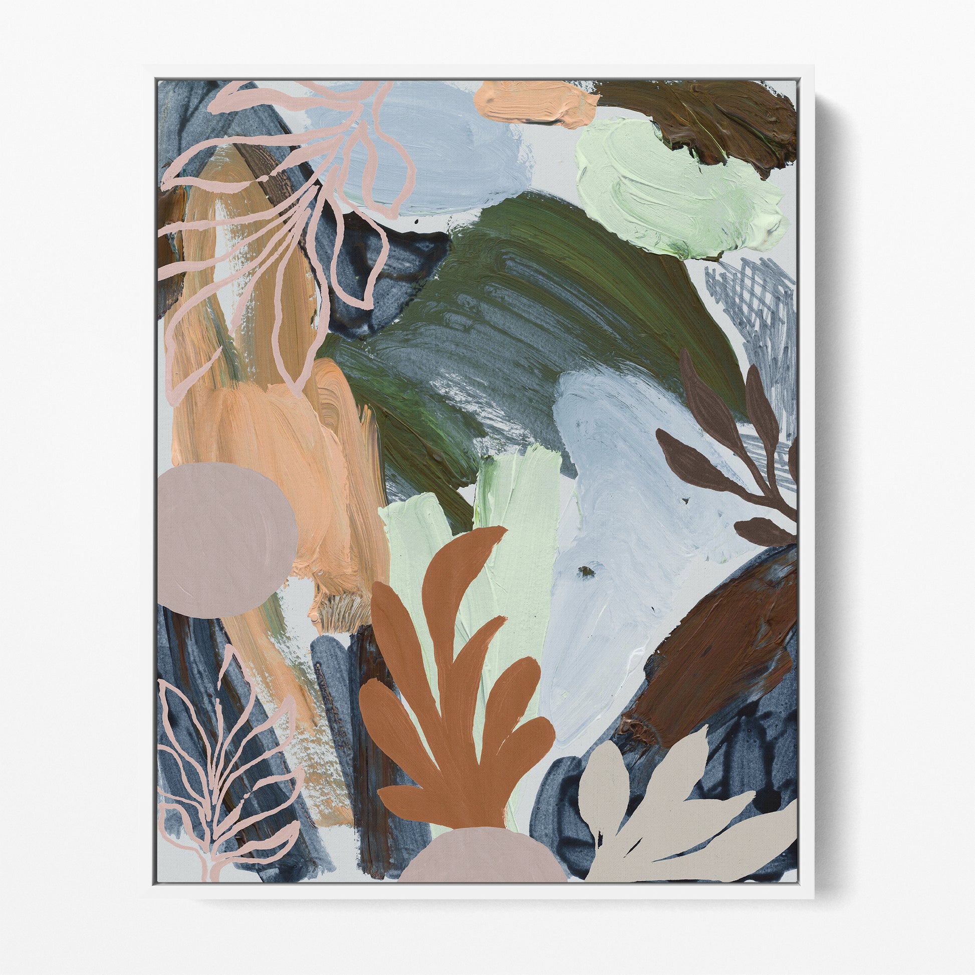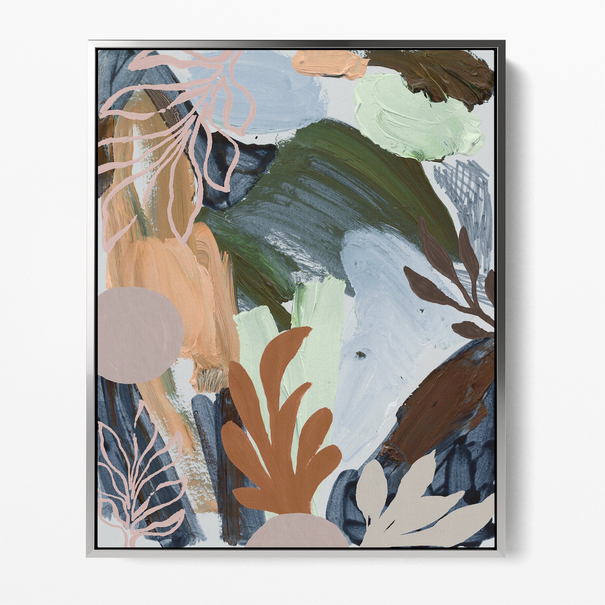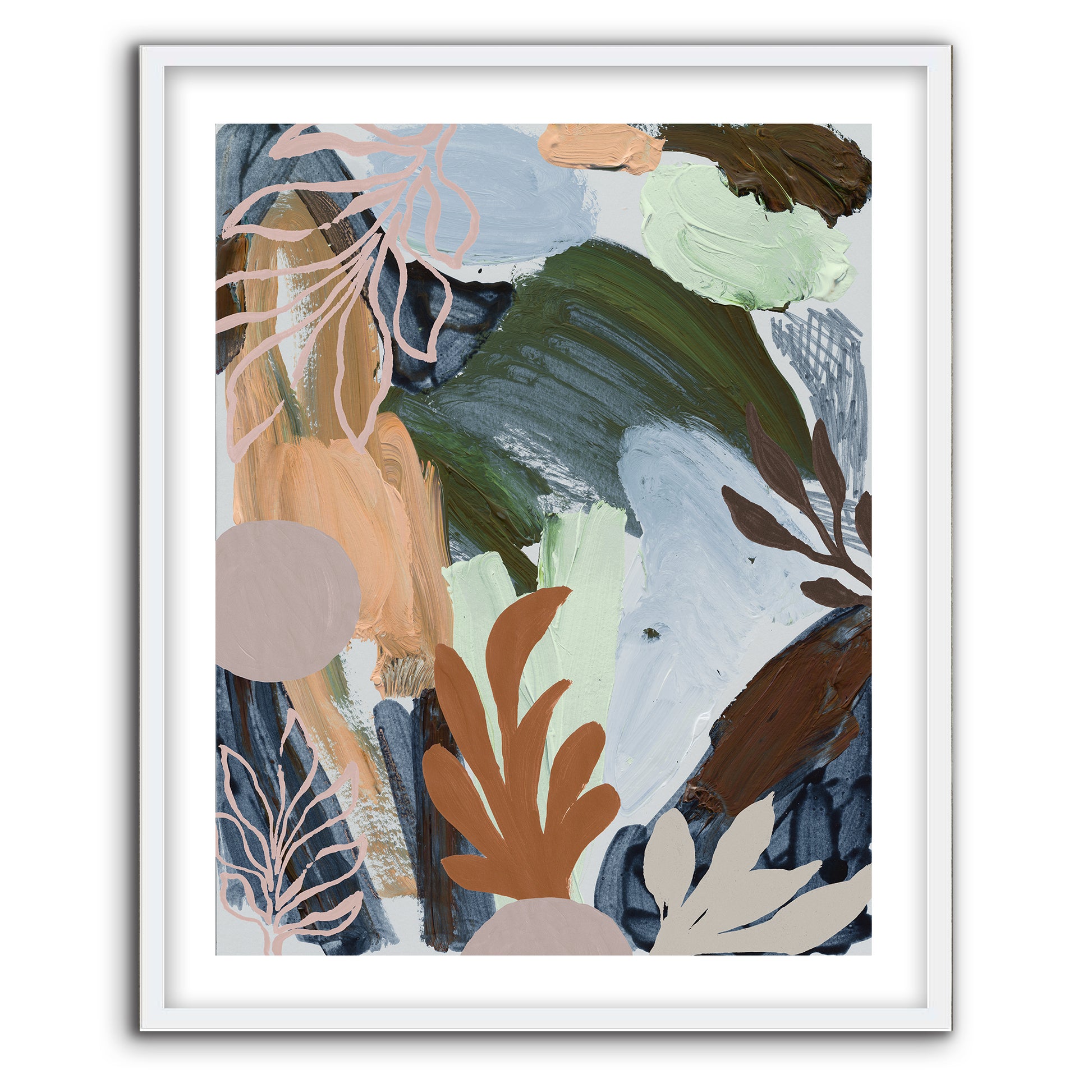 Cool mints, Autumn hues and ash blues among a botanic abstract art-print