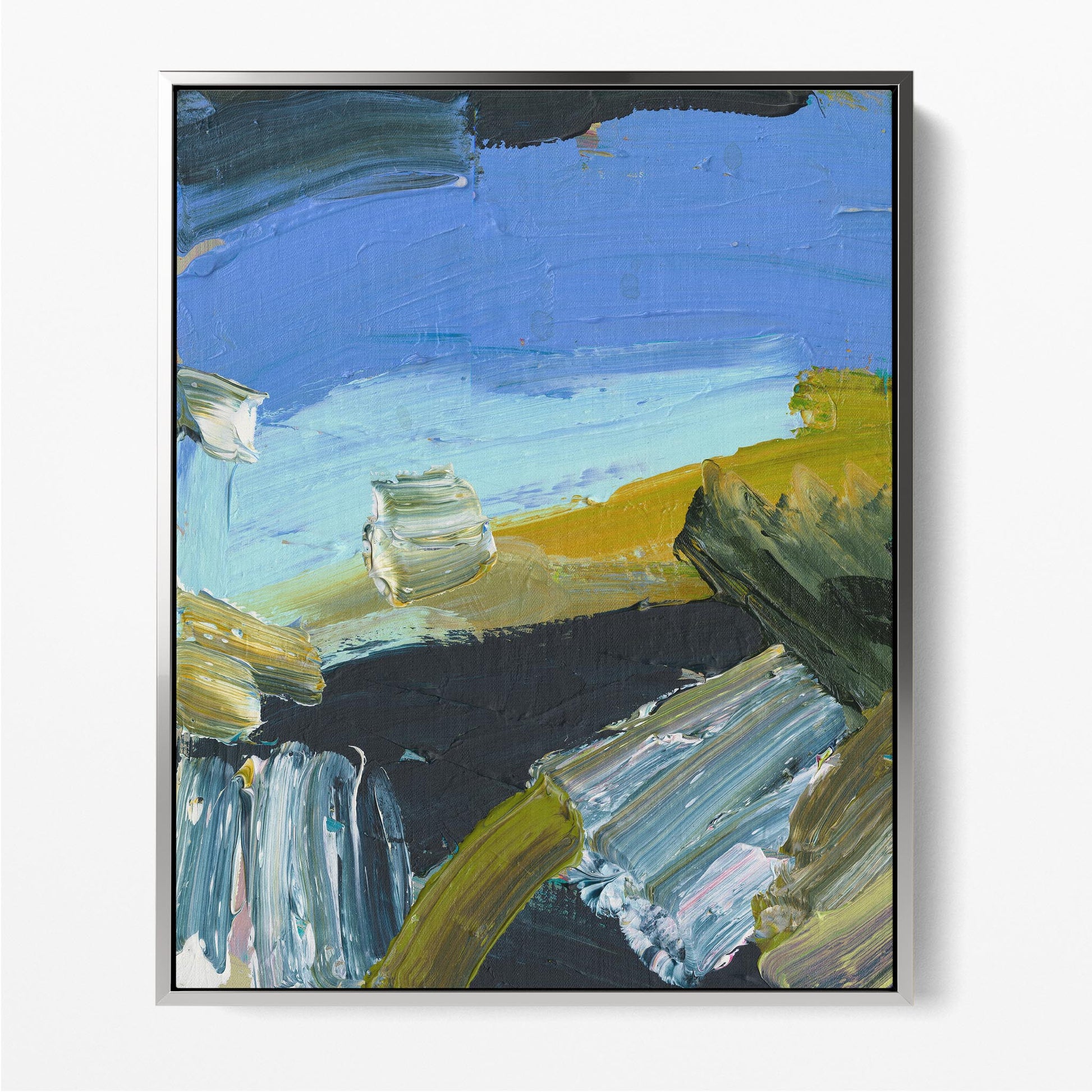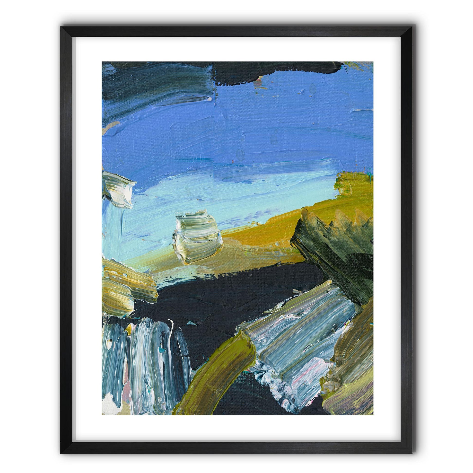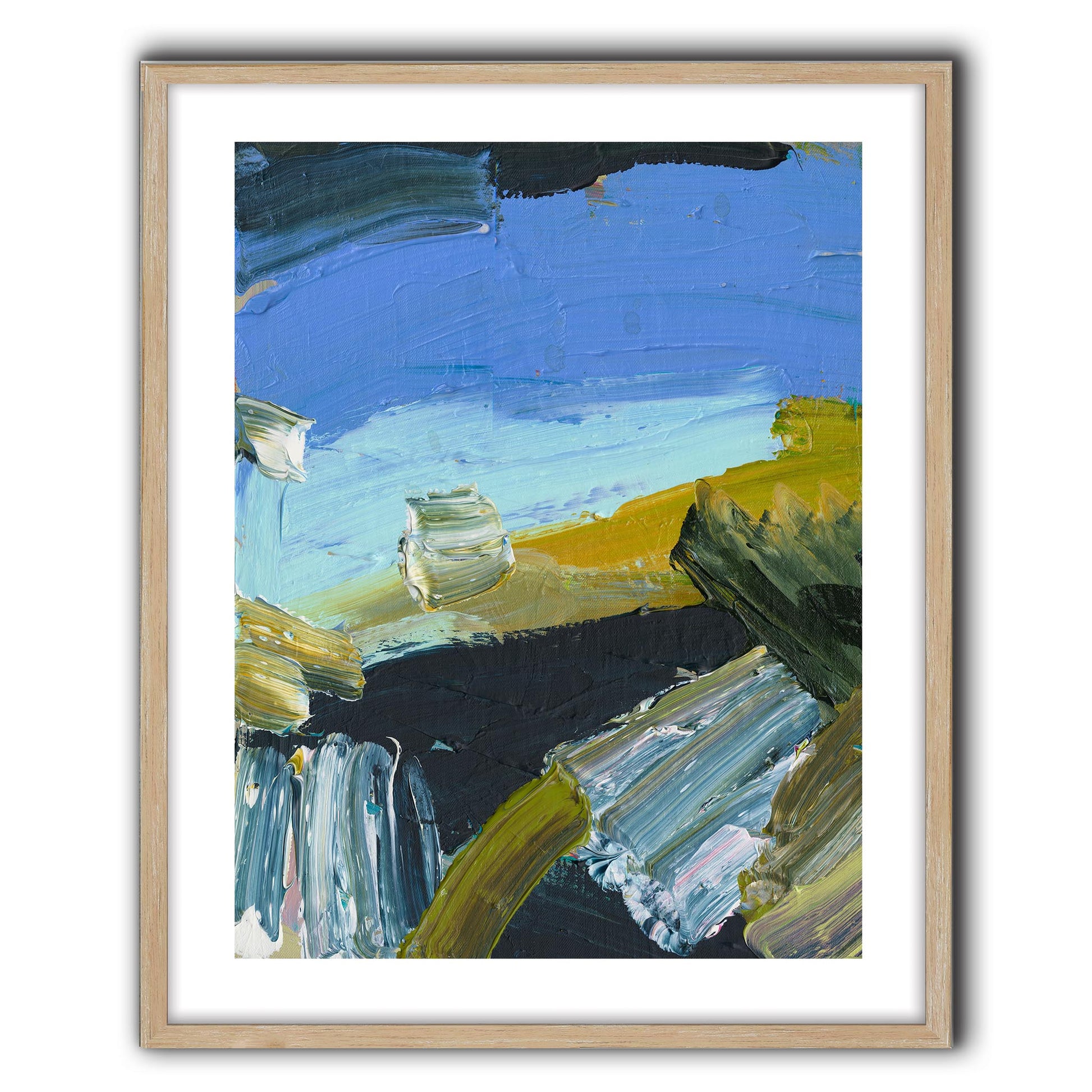 Large sweeping brush stokes form a beautiful abstract landscape. Blues and greens combine to create a cool, colourful print.