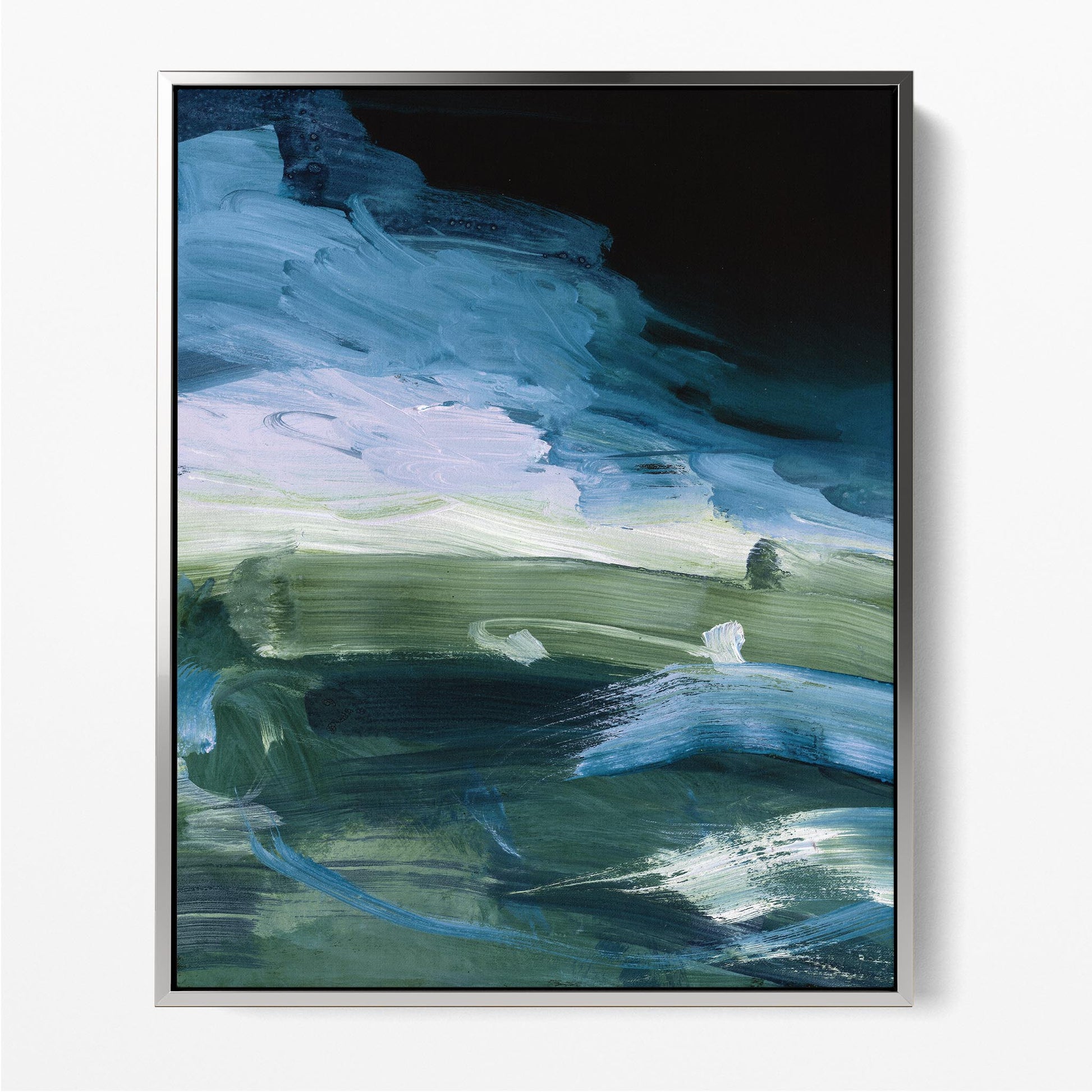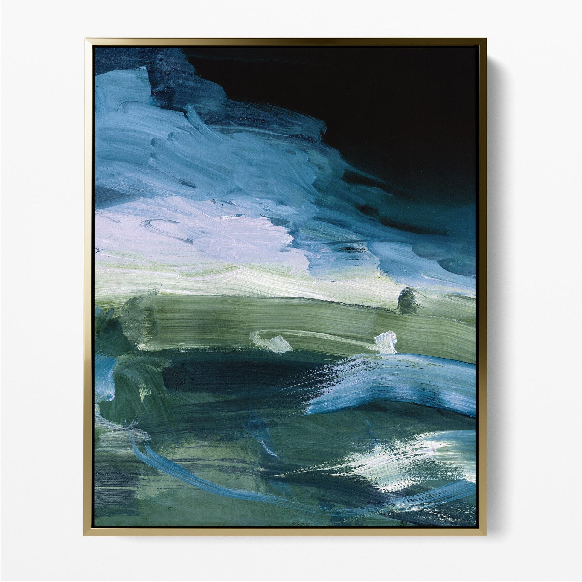 Coastal blue hues and sea green sweeping brushstrokes forming an ocean scene.